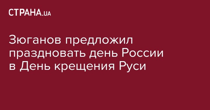 Во фракция КПРФ, которую возглавляет Геннадий Зюганов, предложили перенести главный госпраздник  России  - День России с 12 июня на 28 июля, в День памяти великого князя Владимира. 28 июля также отмечается, в том числе и в Украине, как День крещения Руси. Об этом сообщает ТАСС.