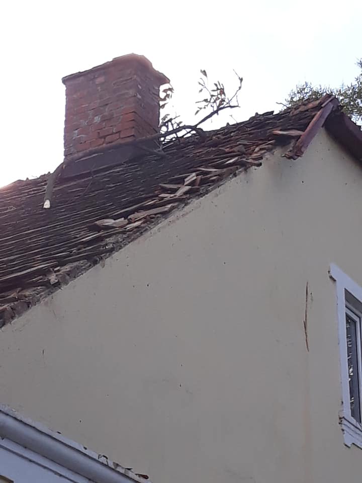 По состоянию на 15:00 на улице Яна Гуса, 37 дерево повредило забор и крышу частного дома. В Ротари-парке отломилась большая ветка каштана, а на улице Мытной - ветка клена.