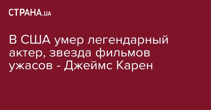 В США умер известный киноактер Джеймс Карен. Об этом пишет THR.