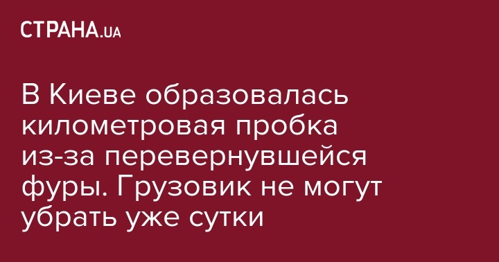 Из-за фуры, которая перевернулась 24 октября на Окружной дороге в Киеве, в столице до сих пор затруднено движение автомобилей. Все дело в том, что за сутки транспортное средство так и не убрали. Об этом сообщает ТСН.