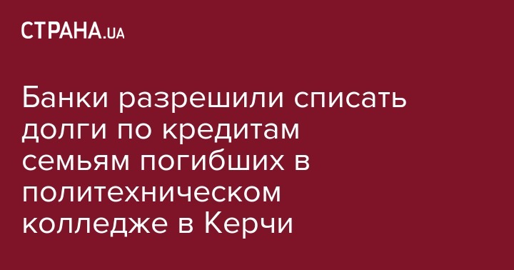 В частности, банк "Россия" уже заявил, что спишет долги по займам семьям погибших и пострадавших. Сейчас сотрудники кредитной организации устанавливают, были ли среди погибших и раненых в Керченском политехническом колледже их клиенты. Также о намерениях списать долги семьям погибших сообщил РНКБ. Однако пока к ним никто их родственников жертв не обращался.