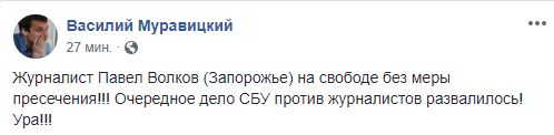 "Очередное дело СБУ против журналистов развалилось", - резюмировал Муравицкий.
