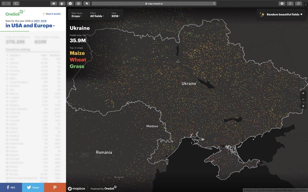 Создатели использовали данные Европейского космического агентства, а также инструментарий от Mapbox, картографической платформы с открытым исходным кодом. В базу занесены более 60 млн угодий, система умеет распознавать около 20 видов сельхозкультур.