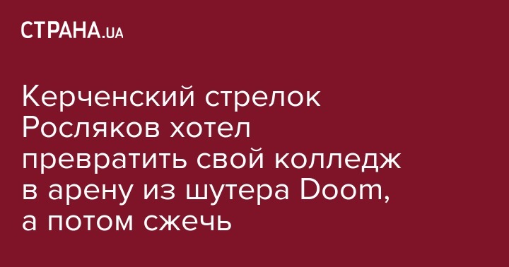 Также, по данным оперативников, Росляков, мечтал превратить свой колледж в арену из шутера Doom и сжечь его после бойни.