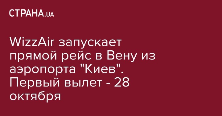 Авиакомпания WizzAir открывает новый рейс из Киева в Вену. Об этом сообщает пресс-служба аэропорта "Киев" на странице в Facebook.