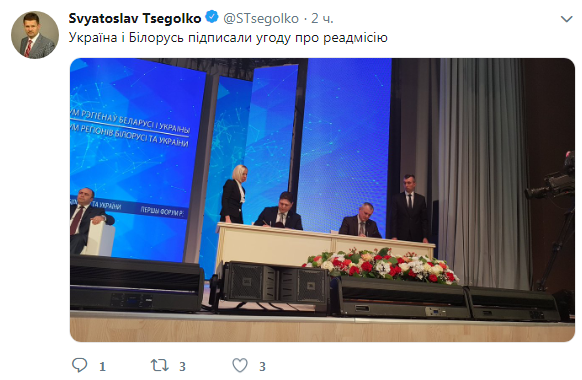 Украина и Беларусь после встречи двух президентов в Гомеле 26 октября подписали договор о реадмиссии. Об этом сообщает пресс-секретарь Петра Порошенко Святослав Цеголко на своей странице в Twitter.