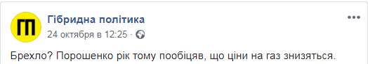 В сообщении фейсбук-сообщества "Гібридна політика" также говорится, что такое заявление он сделал год назад.