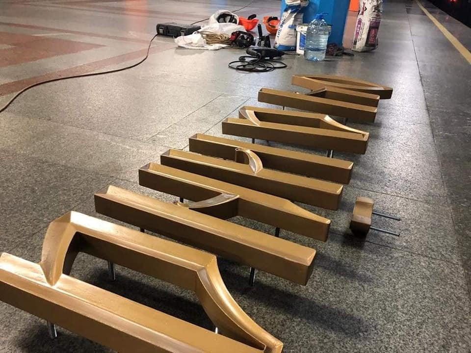 Однако, кроме самих букв и их установки, пришлось также перепечатать все карты, которые размещаются в вагонах поездов, заменить название в навигации на каждой станции и пересадочных узлах, внести соответствующую информацию в документацию.