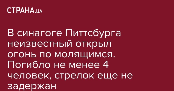 В синагоге Питтсбурга неизвестный открыл огонь по молящимся. Погибло не менее 4 человек, стрелок еще не задержан