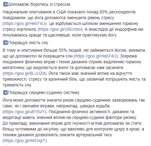 И. о. министра здравоохранения Ульяна Супрун расказала украинцам о йоге. По ее мнению йога является эффективным средством борьбы с болью в спине, помогает оставаться подвижными людям даже с хронической болью. Это прекрасный вариант физической активности, который помогает держать тело и разум в тонусе.