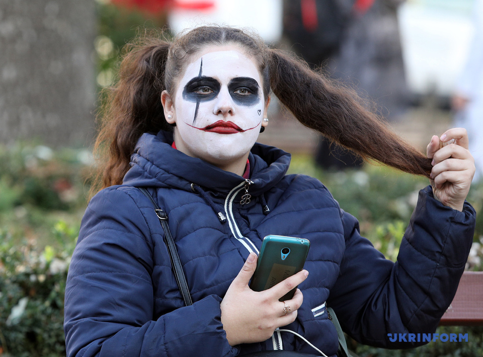 По Киеву в честь Хэллоуина прошли парадом зомби, ведьмы и мертвецы. Фото