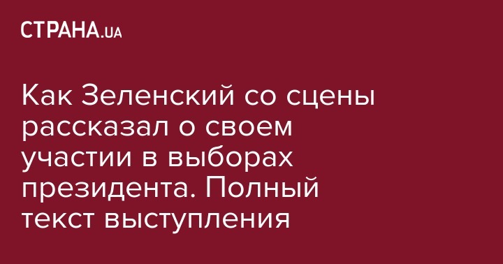 "Страна" предлагает полный текст спича Зеленского о своем участии в президентской гонке.