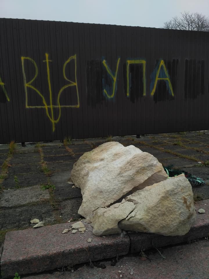 "Сегодня ночью какие-то "бессмертные" животные разбили закладной камень под Монумент доблести украинских воинов", - сказано в сообщении.