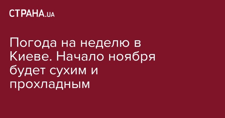 Сайт Weather.com обещает, что в первой половине недели будет преимущественно пасмурно, но без осадков. Затем в Киеве проглянет солнце. Конец октября ознаменуется температурой +16...+17. С 1 ноября воздух станет прохладнее на пару градусов: +14...+15. На выходных переменная облачность без дождя, +14...+15.