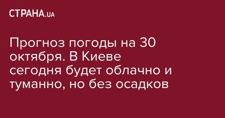 В Киеве 30 октября ожидается облачная погода, которая продержится весь день. День будет без осадков. Температура ночью +7…+9, днем +13…+15. Об этом сообщает Укргидрометцентр