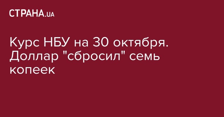 Во вторник, 30 октября, официальный курс гривны установлен на уровне 28,20 гривни/доллар. Об этом говорится на официальном сайте регулятора. По сравнению с 29 октября курс всех основных валют снизился.
