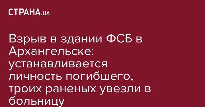 "Сработало неустановленное взрывное устройство. Трое находятся в больнице. Есть погибший, личность которого устанавливается", - сказал он и уточнил, что взрыв произошел внутри здания управления ФСБ по Архангельской области.