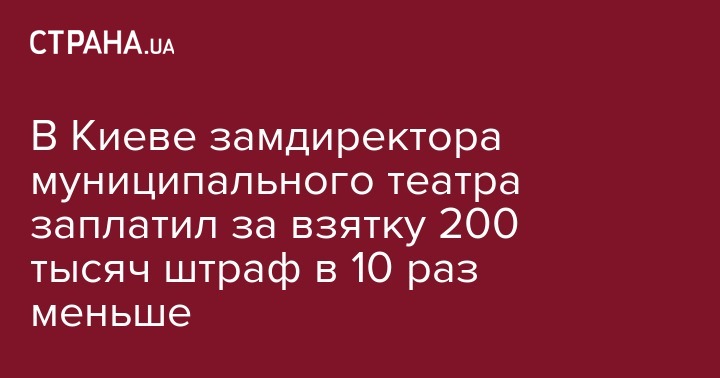 Заместитель директора Киевского муниципального академического театра оперы и балета для детей и юношества Алексей Красильников, который попался на взятке в 200 тысяч гривен, оштрафован всего на 22 тысячи гривен. Об этом идет речь в приговоре Подольского районного суда Киева, обнародованном 30 октября в ЕРСР.