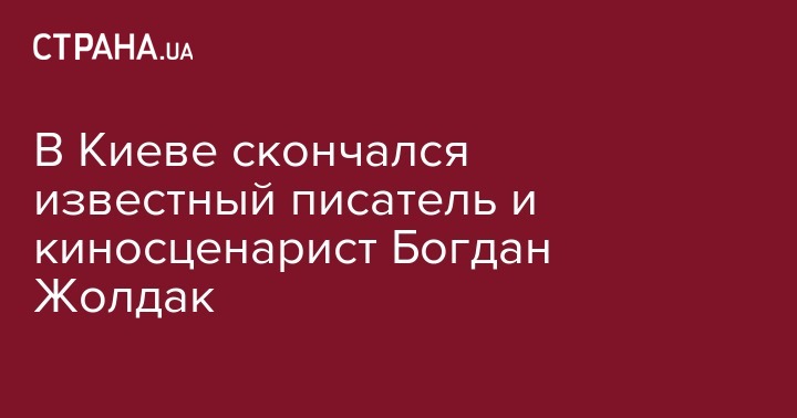 В Киеве в возрасте 70 лет скончался известный писатель, драматург и киносценарист Богдан Жолдак. Об этом на своей странице в Facebook сообщил представитель Национального союза писателей Украины Василий Трубай.