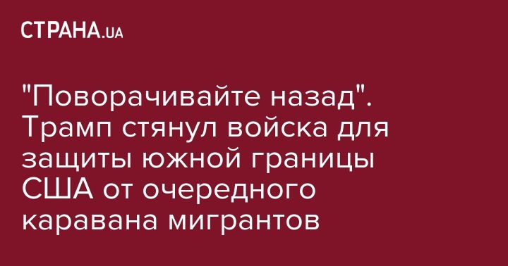 "Наши военные мобилизованы на южной границе. В скором времени там будет еще больше войск. Мы не пропустим в США эти колонны, в которые входят преступники и члены банд", - написал Трамп. "Наша граница священна, и пересекать ее можно только легально. Поворачивайте назад", - добавил он.