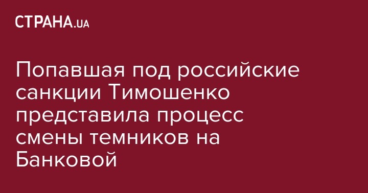Лидер партии "Батькивщина" Юлия Тимошенко заявила, что уже представляет начавшийся "процесс замены темников" в администрации президента, после ее попадания под российские санкции. Об этом говорится в сообщении на ее странице в Facebook.