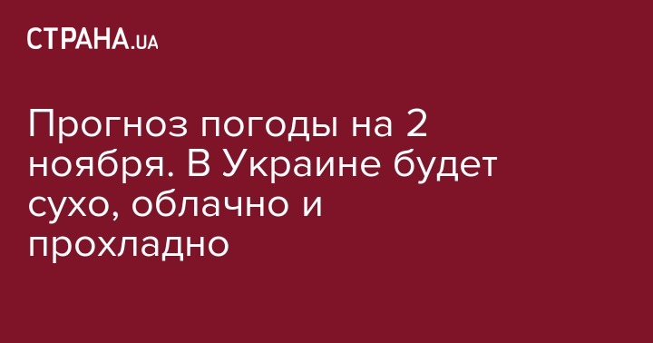 Сегодня, 2 ноября, почти во всех областях Украины ожидается сухая и облачная погода. Об этом пишет сайт Укргидрометцентра.