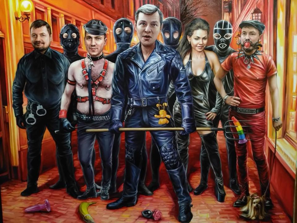 На полотне в БДСМ-стиле изображены люди, похожие на главу Радикальной партии Олега Ляшко, нардепов-радикалов Игоря Мосийчука, Дмитрия Линько, Андрея Лозового и Алену Кошелеву. Человек, похожий на Ляшко держит вилы с разноцветным резиновым органом, а у человека, похожего на Лозового, во рту красный кляп БДСМ.