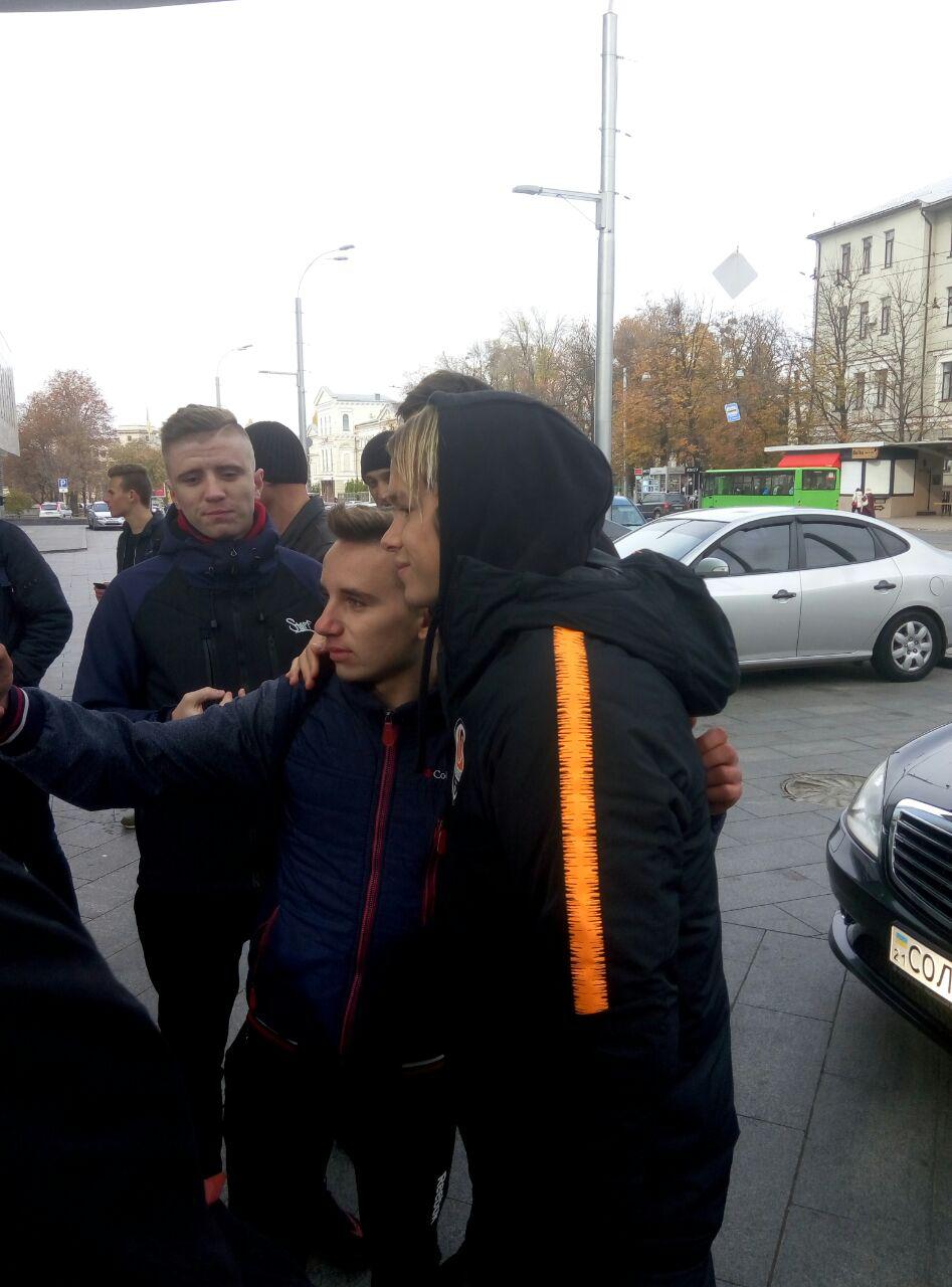 У гостиницы "Kharkiv Palace" сегодня днем собрались болельщики Шахтера. Они пришли не зря. Михаил Мудрик с удовольствием фотографировался со всеми желающими.