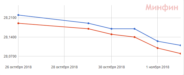 Также   Национальный банк Украины укрепил официальный курс национальной валюты по отношению к доллару на 5 ноября до уровня 28,132823грн/$1 по сравнению с 28,157863 грн/$1 на 2 ноября 2018г.