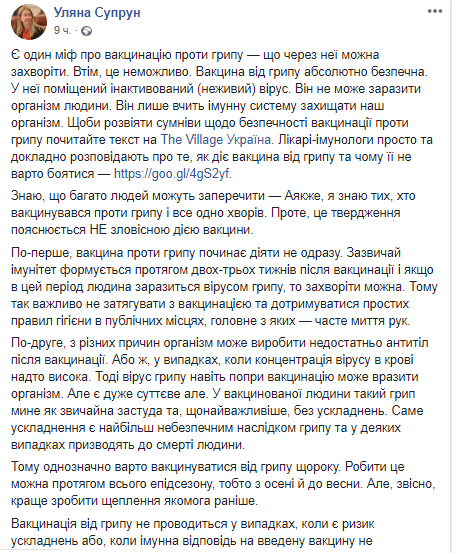 Скриншот: Facebook/ Уляна Супрун