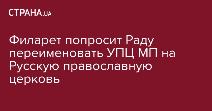Филарет попросит Раду переименовать УПЦ МП на Русскую православную церковь