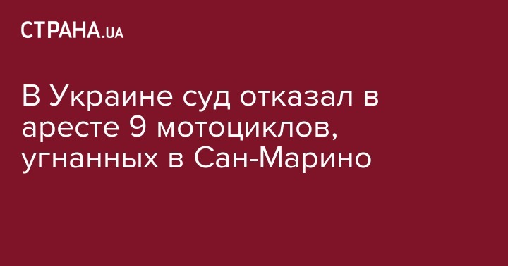 Печерский районный суд Киева отказался наложить арест на девять мотоциклов по запросу Италии. Сообщается, что транспорт угнали в Сан-Марино и переместили в основном в Украину. Об этом говорится в судебных материалах, сообщают "Украинские новости".