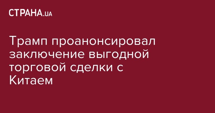 Трамп проанонсировал заключение выгодной торговой сделки с Китаем
