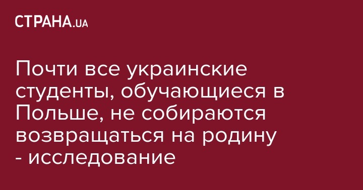 Только 6% украинских студентов, обучающихся в Польше, собираются после выпуска из учебного заведения вернуться в Украину. Об этом со ссылкой на результаты исследования аналитического центра CEDOS пишет Zn.ua.