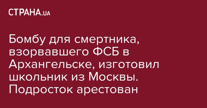 В Москве арестован школьник Кирилл, которого подозревают в изготовлении бомбы для 17-летнего подростка, взорвавшего здание ФСБ в Архангельске. Об этом сообщает ТАСС.