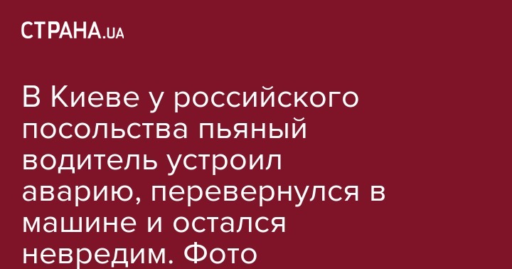 На Воздухофлотском проспекте Киева, напротив посольства России, произошло ДТП. После столкновения двух легковушек одна из перевернулась и стала вверх колесами.
