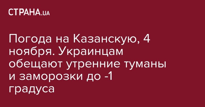 Погода на Казанскую, 4 ноября. Украинцам обещают утренние туманы и заморозки до -1 градуса