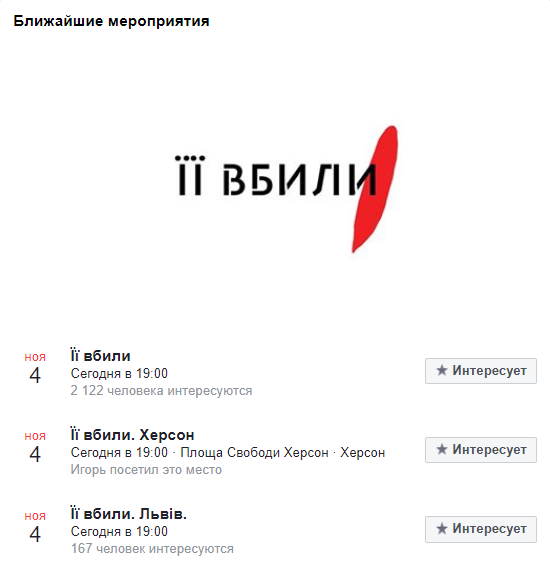 Если верить опубликованной на странице информации, то аналогичные мероприятия пройдут как минимум в Херсоне, где работала Гандзюк, и Львове.