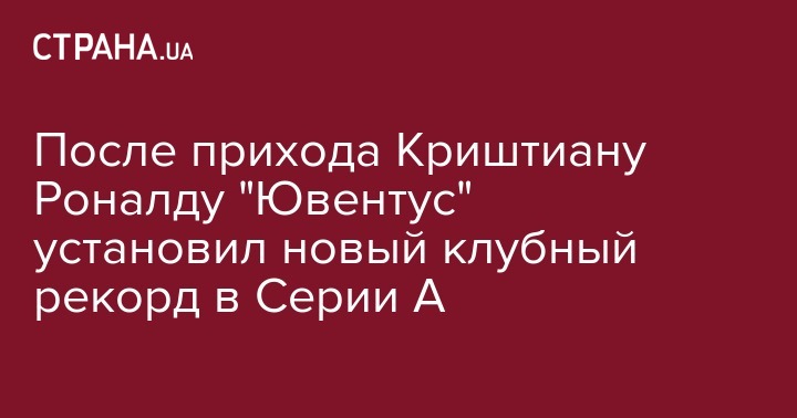 После прихода Криштиану Роналду "Ювентус" установил новый клубный рекорд в Серии А