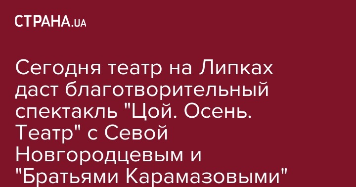 Сегодня, 5 ноября, в Киеве Театр на Липках представит благотворительный спектакль "Цой. Осень. Театр". На сцену перед публикой выйдут "Братья Карамазовы", Дмитрий Самко, Роман Мацюта, Серго Чантурия и Андрей Граница из культовой рок-группы "Пираты Бэнд" а также и молодые актеры.