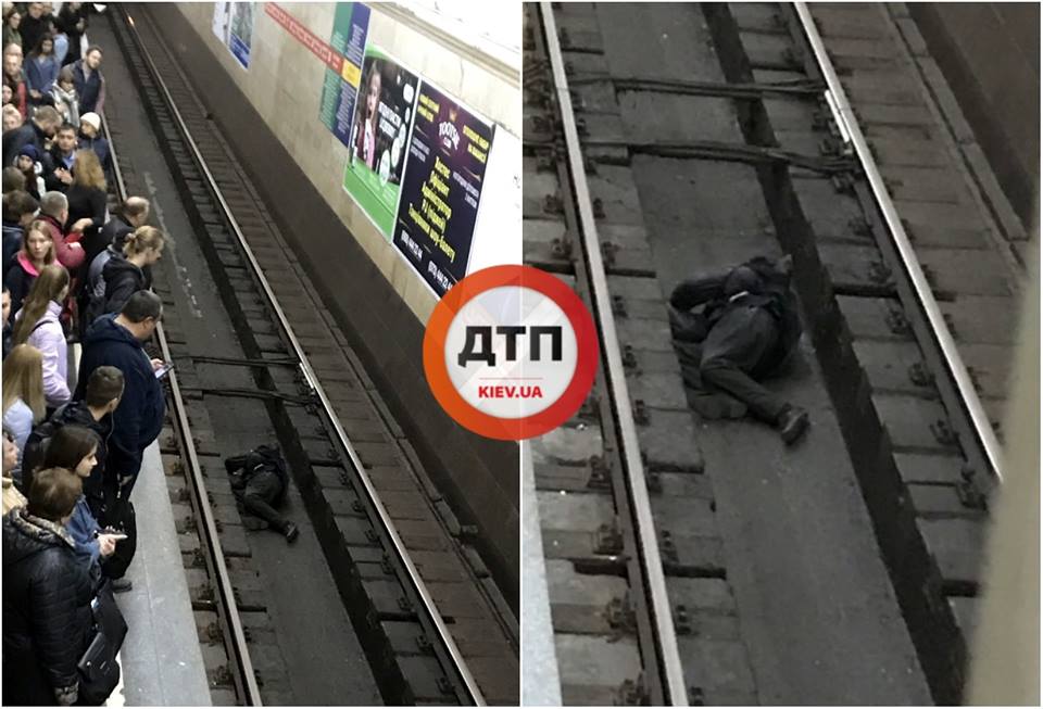 В Киеве на станции "Крещатик" мужчина решил поспать между рельсов метро