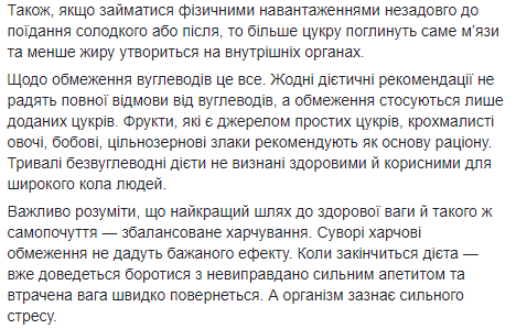 Супрун рекомендует следить за уровнем потребления таких сахаров. Съедать в сутки не более 32-50 граммов.