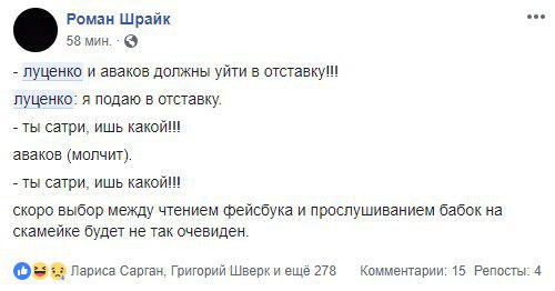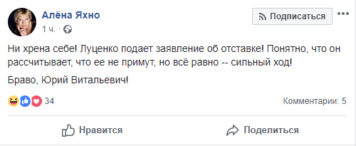 Некоторые пользователи Facebook полагают, что новость об отставке Луценко переоценена, ведь, по большому счету, от нее никто не выиграет и не проиграет.