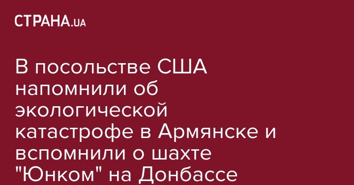 В посольстве США напомнили об экологической катастрофе в Армянске и вспомнили о шахте "Юнком" на Донбассе