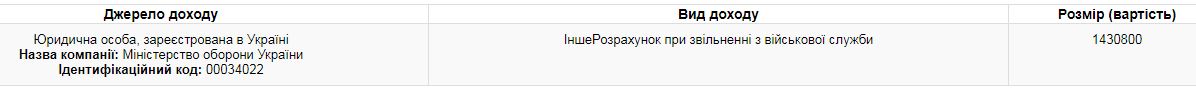 При увольнении с воинской службы министр обороны Степана Полторак получил 1,4 млн. гривен расчетных средств. Об этом сказано в изменениях к декларации Полторака, поданных сегодня, 6 ноября.