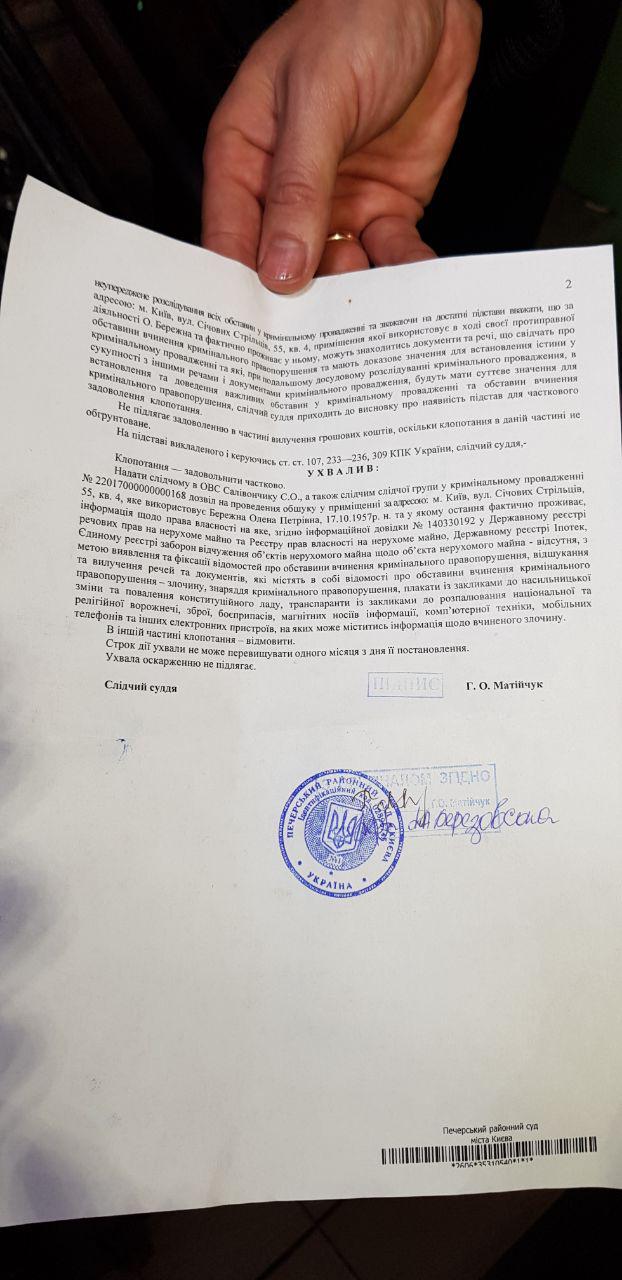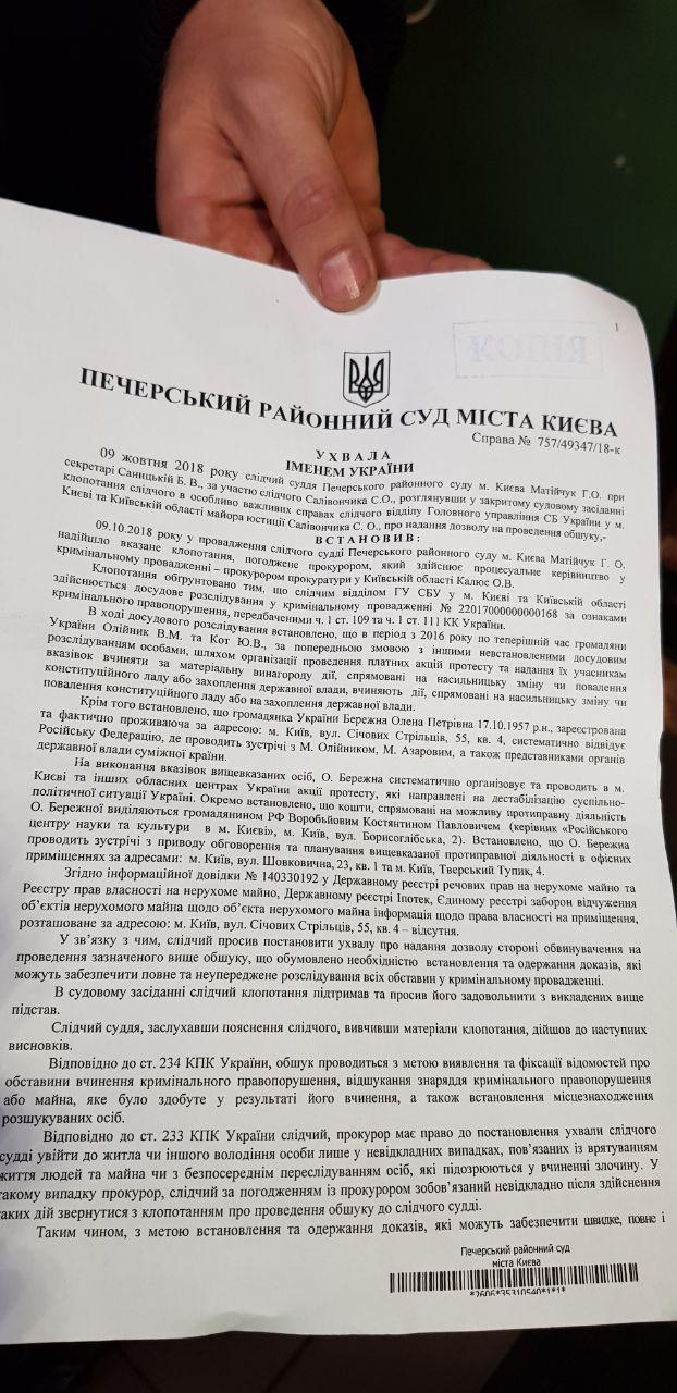 Напомним, ранее в СБУ подтвердили обыски у Бережной и ее соратников.