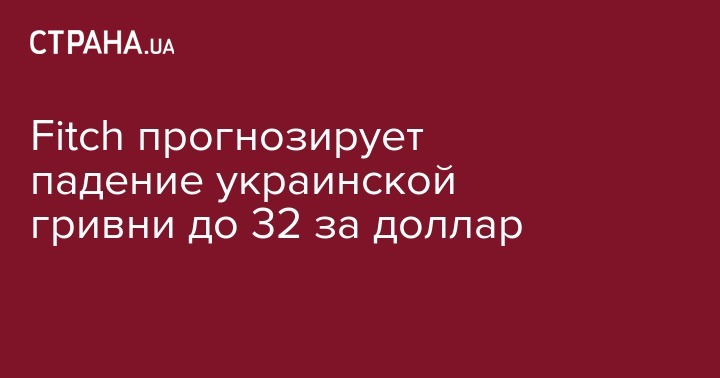 Об этом говорится в сообщении на сайте Fitch. Согласно ожиданиям агентства, в 2020 году гривня подешевеет еще больше - до 32,3 грн/долл.