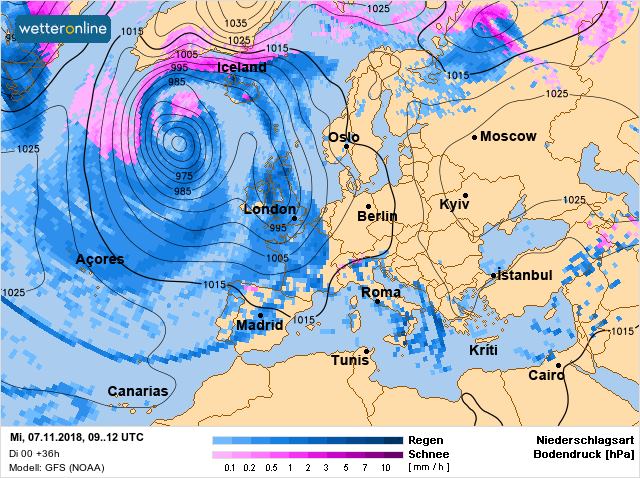 По ее словам, мощный атлантический циклон сейчас бушует на территории Исландии, Гренландии, Великобритании, Франции и Испании. Именно поэтому в этих странах наблюдаются осадки, местами даже снег. Кроме того, дожди завтра пройдут на побережьях Адриатического моря - в Италии и Хорватии.
