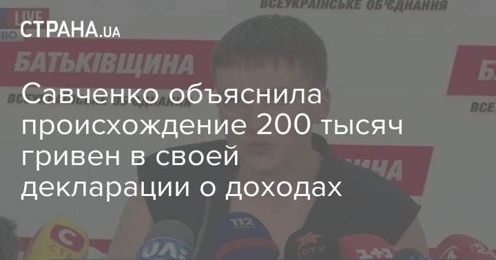 Савченко объяснила происхождение 200 тысяч гривен в своей декларации о доходах