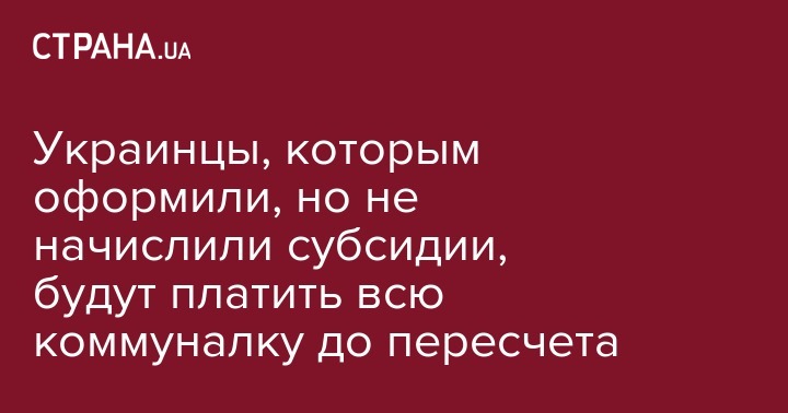 Украинцы, которым оформили, но не начислили субсидии, будут платить всю коммуналку до пересчета